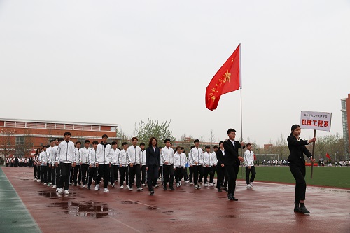 4月13日,我院第十三届师生运动会在西操场隆重举行。党委书记、院长王斌,副院长张永锋,党委副书记白亮、孟菲菲,财务总监王俊敏,院长助理汪飞星,体育部主任吴铁桥,教务处处长张建华,财务处处长李广庆,后勤处处长张卫,院办主任郭雅娟,招生就业处处长柯瑜,基建产业处副处长孟祥瑜,招生就业处副处长、就业指导中心主任罗富臣,人事处副处长王军,学生处副处长田勇及各系党总支书记出席了开幕式。团委书记殷实主持开幕式。