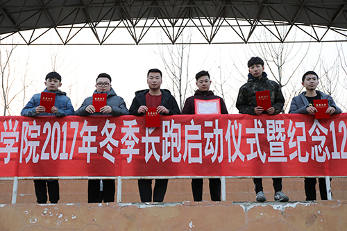 2017年冬季长跑活动启动仪式暨纪念一二.九运动越野赛”在我院西操场隆重举行。学院党委副书记叶振楠,体育部主任吴铁桥,学生处副处长、信息系党总支书记田勇,机械系党总支书记陈月,外语系党总支书记张莉,管理系党总支副书记周少华,团委书记殷实及体育老师和各系师生600余人出席了本次活动。