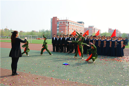 4月15日上午八点,由我院体育运动委员会主办的第十一届师生运动会在院西操场拉开帷幕。院长郭景文、党委书记王斌、副院长曾广晟、财务总监王俊敏,党委副书记白亮、叶振楠、孟菲菲,体育部主任吴铁桥、教务处处长尹常治,基建后勤处处长王兴元、招生就业处处长张卫、现代教育中心主任范丽丽、财务处副处长李广庆及各系党总支书记出席了开幕式。开幕式由团委副书记殷实主持。
