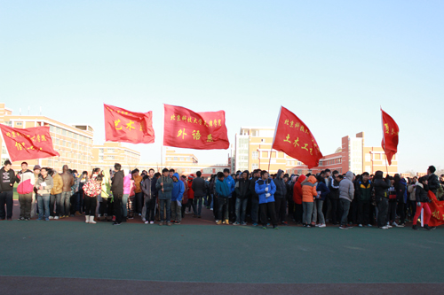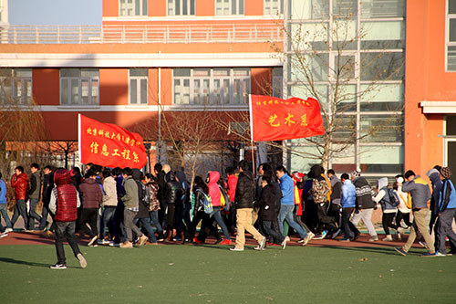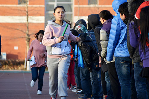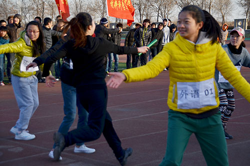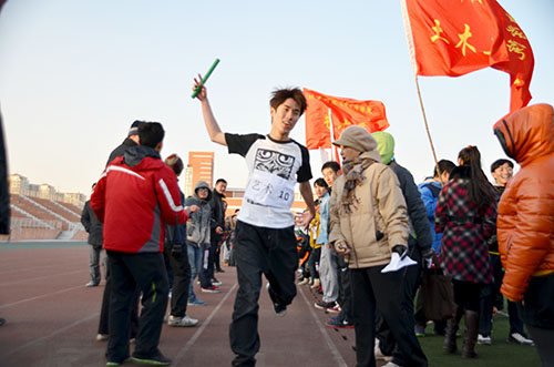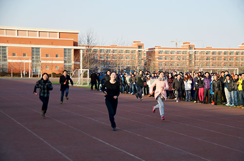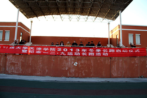 2013年冬季长跑活动开始。一千余名同学绕操场开始长跑,拉开了我院学生冬季长跑活动的序幕。随后进行纪念一二.九运动长跑接力活动,来自学院各系的九支参赛队伍整装待发,每支参赛队由一名教师、6名男生和4名女生组成。在同学的助威呐喊声中长跑接力正式开始,第一棒由各系教师领跑前50米,之后接力棒交给各系代表队队员。经过近四十分钟的激烈角逐,土木系荣获第一名,艺术系获得第二名,管理系获第三名,材料系和外语系获得“精神文明奖”。