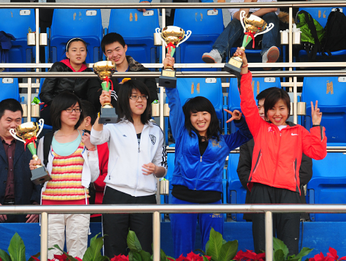 本届运动持续一天,进行长短跑、跳高、跳远等田径类项目的比赛及龙卷风、10人8字跳绳等趣味类活动。比赛中,最振奋人心的是下午4:30的男女4*400接力。我院健儿发扬了拼搏进取、奋勇向前的精神,取得了男子组第三名、女子组第三名的好成绩。伴随着男子4*400米接力赛的结束,运动会走向尾声。在闭幕式中,总裁判长章荣江老师宣布了本届综合运动会的比赛成绩。我院取得了男子团体第四名、女子团体第二名、男女团体总分第二名的佳绩。最后,由出席闭幕式的领导为取得优异成绩的团体颁奖。