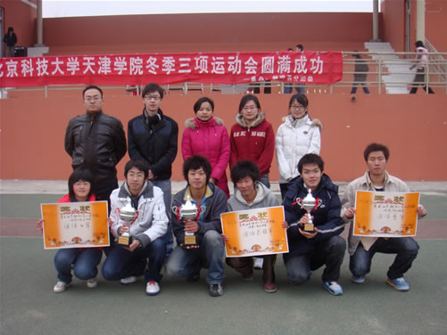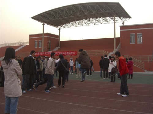 首届“冬季三项”运动会由管理系分团委承办,历时一周,“冬季三项”包括接力长跑、跳绳(集体跳绳、双人跳绳、单人跳绳)、踢毽子三个运动项目,全院八个系组队参加了运动会。