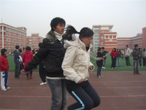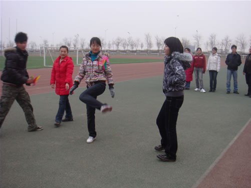 12月10日下午举行踢毽子比赛。经过激烈的角逐,管理系、经济系摘得第一、二名。