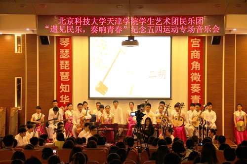 4月27日晚19:00,我院学生艺术团民乐团“遇见民乐,奏响青春”纪念五四运动专场音乐会于理工图书馆学术报告厅隆重举行,我院团委书记罗富臣,机械系党总支书记郭雅娟,外语系党总支书记何红升,艺术教育中心主任林碧芸,学生艺术团及在校师生共同欣赏了精彩的演出。