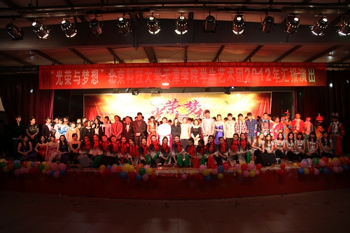 七点整,主持人热情洋溢的开场拉开了整场晚会的序幕。春天永远是艺术家永恒的主题,首先登场的节目是管弦乐团带来的合奏《春之声圆舞曲》。一曲独唱《暗香》之后,管弦乐团带来的小合奏《赛马》仿佛让大家置身于宽广的大草原上。戏剧社为观众献上的小品《甄嬛外传》,带大家一同穿越,演绎了一场别开生面的后宫争斗戏,引得观众阵阵笑声,掌声不断。浓郁的民族风格,强烈的时代气息,鲜明的地域特色,厚重的艺术氛围,舞蹈团带来的蒙古舞蹈《塔林毕斯贵》让大家感受到了蒙古族女性的端庄典雅、豪迈奔放。合唱团的小合唱《年轻的战场》给正值青春年华,年少轻狂的年轻人无限鼓舞。民乐合奏《远情》让大家感受到了民族音乐的独特气息。舞蹈团的热舞《bad girl》把晚会推上了一个高潮。合唱团的独唱《掉了》以轻盈的风格与电声乐队带来的激情乐队演绎形成鲜明对比,给现场观众带了了不一样的视听感受。晚会特邀民乐团外聘指导老师石露云辉演绎唢呐独奏《阳光》,石老师的精彩演绎博得观众阵阵掌声。合唱团带来的歌曲串烧激情而又精彩,唱出了歌曲的灵魂。舞蹈团的经典获奖节目《映山红》为党的十八大胜利召开献上了光荣礼赞。晚会在合唱团的男女对唱《天地在我心》的歌声下落下帷幕。演出中还播放了艺术团日常排练以及指导教师寄语的视频短片,短片回顾了艺术团在过去几年取得的各项成绩,展望了未来的奋斗目标。
