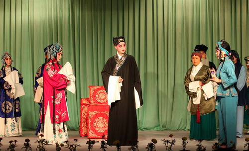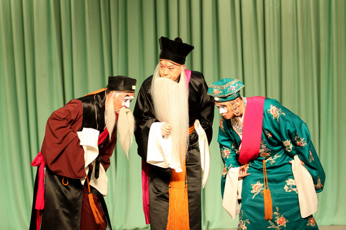 最后,国家京剧院三团的艺术家们为观众带来京剧程派的经典名段《锁麟囊》。演出中,薛湘灵的悲惨遭遇,赵守贞的有恩必报,赵父的无奈和骨气等让观众无不为之动容;而父子傧相的斗嘴,碧玉的诙谐调侃,小东家的天真顽皮等又让观众捧腹不止;梅香的仗势凌人,锣夫的见钱眼开却又让观众若有所思。艺术家们精彩的表演,将观众们带入了那个古老的时代,仿佛置身于这个悲情与恩情并重的故事之中,使得观众们叫好不绝,掌声不断。演出结束后,我院学生代表为艺术家们献上鲜花以示感谢,学院领导上台与嘉宾及演职人员合影留念。