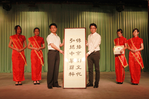 党委书记王斌代表我院与国家京剧院领导互赠礼品