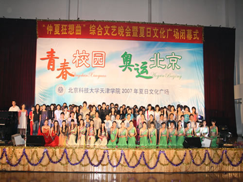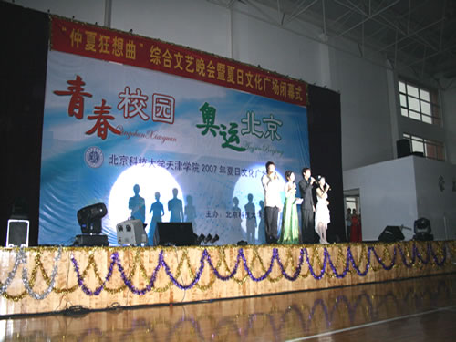 5月31日晚,在我院体育馆举行了“仲夏夜狂想曲”综合文艺晚会暨第二届夏日文化广场闭幕式。本场晚会由团委主办,艺术团承办,副院长、党委副书记曹连东、王斌,学生事务部主任盛佳伟、学生事务部副主任、团委书记叶振楠、团委副书记岳强、张恩惠、代鸿滨、就业指导中心副主任郭雅娟、学工办副主任赵琼、现代教育中心主任范丽丽及各专业辅导员观看了演出。 伴随着悠扬的音乐,由合唱团、舞蹈团表演的开场歌伴舞节目《今夜无眠》闪亮登场,悠扬的女中音以及舒缓优美的舞蹈赢得了全场观众的热烈掌声。本场晚会内容丰富,形式多样,囊括了既幽默又有新意的小品《Q版伯哥与台妹》,民族舞《溜溜的康定,溜溜的情》,傣族舞《竹林深处》及流行歌曲对唱、街舞、歌曲串烧、民乐表演、长笛协奏等节目,展现了我院学生较为深厚的文化底蕴。晚会的一大亮点是由礼仪队和任课教师表演的时装秀《绚丽青春》,同学们爆发了一次次的掌声和尖叫。晚会还特邀天津音乐学院潘海燕老师深情演唱了《祖国你好》,深厚的唱功博得了同学们的阵阵喝彩。最后,晚会在合唱团演唱的《同一首歌》中落幕。 至此,我院第二届夏日文化广场历时一个月圆满结束。 (新闻信息中心 记者:刘英华;摄影:鹿麟、赵英博;编辑:张书源)