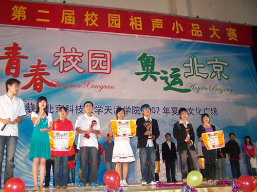 5月23日晚,第二届相声小品大赛在体育馆隆重举行,本次比赛由经管系分团委、话剧社、电影社联合主办。党委副书记、副院长王斌、团委副书记岳强、张恩惠、代鸿滨及各专业辅导员观看了比赛。 本届相声小品大赛参赛节目由各专业和社团选送,共有9个节目参赛,其中,相声3个,小品6个,演员们幽默诙谐的语言和夸张搞笑的动作将一幕幕精心编排的节目展现给观众,晚会现场欢笑声不绝于耳。相声《社团热》、《新西征梦》、小品《孙悟空与白骨精之半生缘》、《响当当杯辩论赛》等都给观众留下了深刻的印象。由国贸064班表演的小品《Q版伯哥与台妹》和由金融06级选送的原创作品《新闻联播》则采用时尚而夸张的语言使作品充满了幽默感和吸引力,他们的演出把现场气氛推向高潮。 根据评委打分,国贸专业的小品《Q版伯哥与台妹》获一等奖、金融专业的小品《新闻联播》获二等奖、戏剧社的小品《考验》获三等奖,各单项奖也都名花有主。党委副书记、副院长王斌、团委副书记岳强、张恩惠、代鸿滨等领导上台颁奖并向演员们表示祝贺。大赛在第二届校园歌手大赛冠军得主官晓尘的歌声中圆满结束。 本届相声小品大赛作为我院第二届夏日文化广场的系列活动,展示了我院学生的表演才能,成为夏日校园一道靓丽的风景线。 (新闻信息中心 记者:孟晓娟;摄影:鹿麟、苏轶;编辑:张书源)