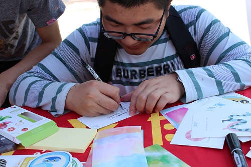活动现场母亲节海报吸引了广大同学的驻足留意,在经过我们桌子上精美的明信片和孝心社同学的讲解,同学们反响热烈,积极参与进来,纷纷在明信片上写下各自对母亲的节日祝福,另外一些同学则把自己想对妈妈说的知心话写在便利贴上并贴在海报上。片刻海报上便的贴上了许多祝福语:“祝妈妈天天开心,身体健康!”、“祝母亲永远年轻漂亮!”等。常常,我们感动于“春蚕到死丝方尽”的无私和“蜡炬成灰泪始干”的奉献。但人世间没有任何一种无私和奉献能与母爱相提并论。即使再冷酷无情和铁石心肠的人,也能体会到母亲的关爱给予他们的心灵慰藉与情感抚慰。也正是这简洁朴实的语音才能蕴含对妈妈的浓浓爱意。