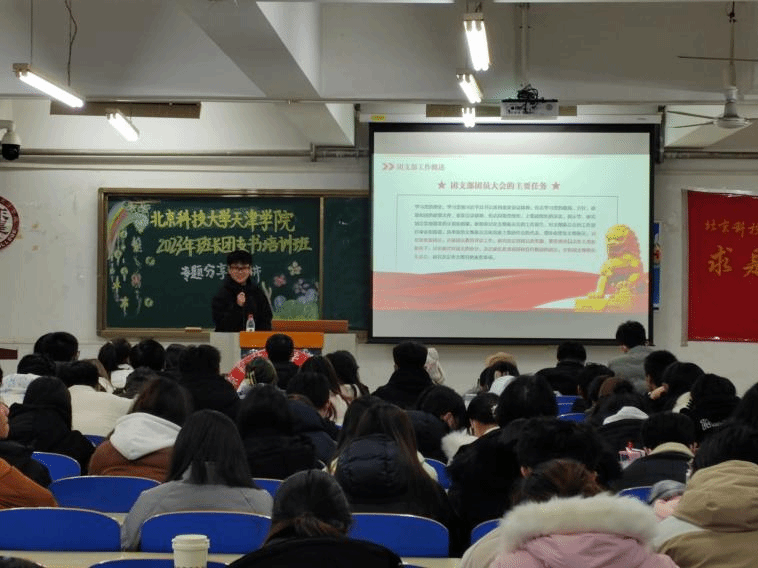 12月11日19:00在9教103举行班长团支书培训班第二讲。兼职团委副书记(学生)纪雅军、杨斌作题为《班长、团支书的业务能力提升》的专题分享。纪雅军、杨斌结合我院广大团员青年学生实际,从班级、团支部建设、“三会两制一课”、学生干部职责、学生工作案例与工作方法等方面,为学员们讲解了如何在广大青年学生中发挥先锋模范示范引领作用。