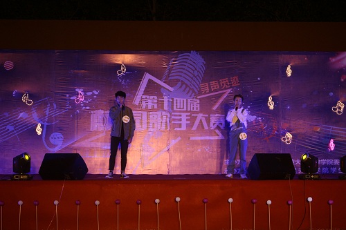 比赛分为专业组和非专业组两个组别,经历过初赛和复赛的层层选拔,共有16位选手从170余参赛选手中脱颖而出,进入最后决赛。校园歌手大赛决赛分为“十佳歌手争夺赛”和“冠亚季军的争霸赛”两个环节。大赛开场特邀嘉宾曹浩东带来歌伴舞的《宠爱》,在欢快的气氛中大赛拉开帷幕。“十佳歌手争夺赛”以参赛选手两两PK的形式进行演唱,PK对唱的场面异常火爆,选手们怀揣着激情与梦想,用他们美妙的歌声感染着观众们的心灵。歌声美妙动听,赢得台下阵阵掌声。选手和观众们一起互动,全场一起挥舞荧光棒,迎来了一场大合唱,使得现场气氛也到达了一个小高潮,所有人都沉浸在气氛之中,直到第一环节结束,我们仿佛还停留在各位选手为我们带来的视听盛宴之中。经过激烈的争逐,陈浩、王晚璐、宋馥宇、刘一莲、杨金橙、于岳辰、王禹淇、黄可、勒泽君,秦飞雪和梁维获得了十佳歌手的称号。