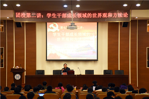 11月19日晚6:30,第七期团校第二讲在学术报告厅举行。南开大学环境科学与工程学院党委副书记兼副院长、中国青年环境保护奖获得者刘振老师做了“学生干部成长领域的世界观和方法论”的主题讲座。