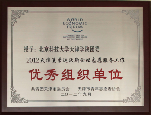 青年志愿者的良好服务形象和精神风貌,同时也得到了天津市相关部门的赞扬与肯定。最终,我院团委被评为“2012天津夏季达沃斯论坛志愿服务工作优秀组织单位”。