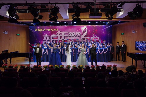 艺术系主办,艺术声乐教研室教工党支部、艺术钢琴教研室教工党支部、艺术学生党支部承办的“庆祝改革开放四十周年暨2019新年音乐会”在弘艺音乐厅精彩上演。问鼎国际