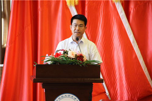 学院党委书记王斌在开幕式上讲话。王书记对我院学生会组织过去五年取得的成绩给予了肯定,对学生会组织及全院学生提出希望:一是进一步加强思想道德建设,切实增强思想引领的针对性和有效性;二是进一步提高创新能力和水平,切实服务好青年学生成长成才;三是进一步加强自身建设,切实打造具有强大凝聚力的学生会组织。