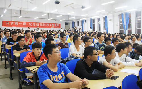 为纪念中国人民抗日战争胜利70周年,培养学生的爱国主义情怀,提高新生的学习自觉能力,让新生以更加积极的态度迎接大学四年的学习生活,9月15日至9月18日,院求是学会在我院9教108教室面向全体大一新生开展了“走好大学第一步”暨纪念抗日战争胜利70周年“大学第一课”主题活动。学生处副处长、团委书记罗富臣,团委副书记潘柏夷、殷实、田勇,团委各部长、各系分团委书记及2015级新生辅导员参加了主题活动。