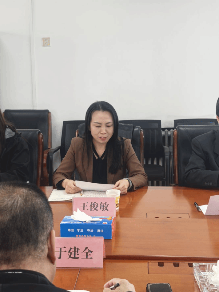 副院长王俊敏发言。王院长表示此次合作是双方深入学习贯彻习近平法治思想的具体实践,也是双方推进法治人才培养与实践需求的深度融合,并就双方的合作提出三点希望,一是希望法学院师生持续认真学习贯彻习近平法治思想,加强加深对习近平法治思想的领悟;二是充分利用好与香河县共建平台,扎实开展学习实践,引导学生努力成为适应社会发展需要的新时代法治人才;三是希望双方在合作中不断总结经验,创新机制,推进理论教学与司法实践深度融合。