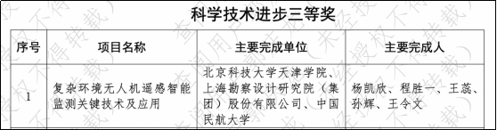 杨凯欣教授主持申报的“复杂环境无人机遥感智能监测关键技术及应用”项目荣获科技进步奖三等奖
