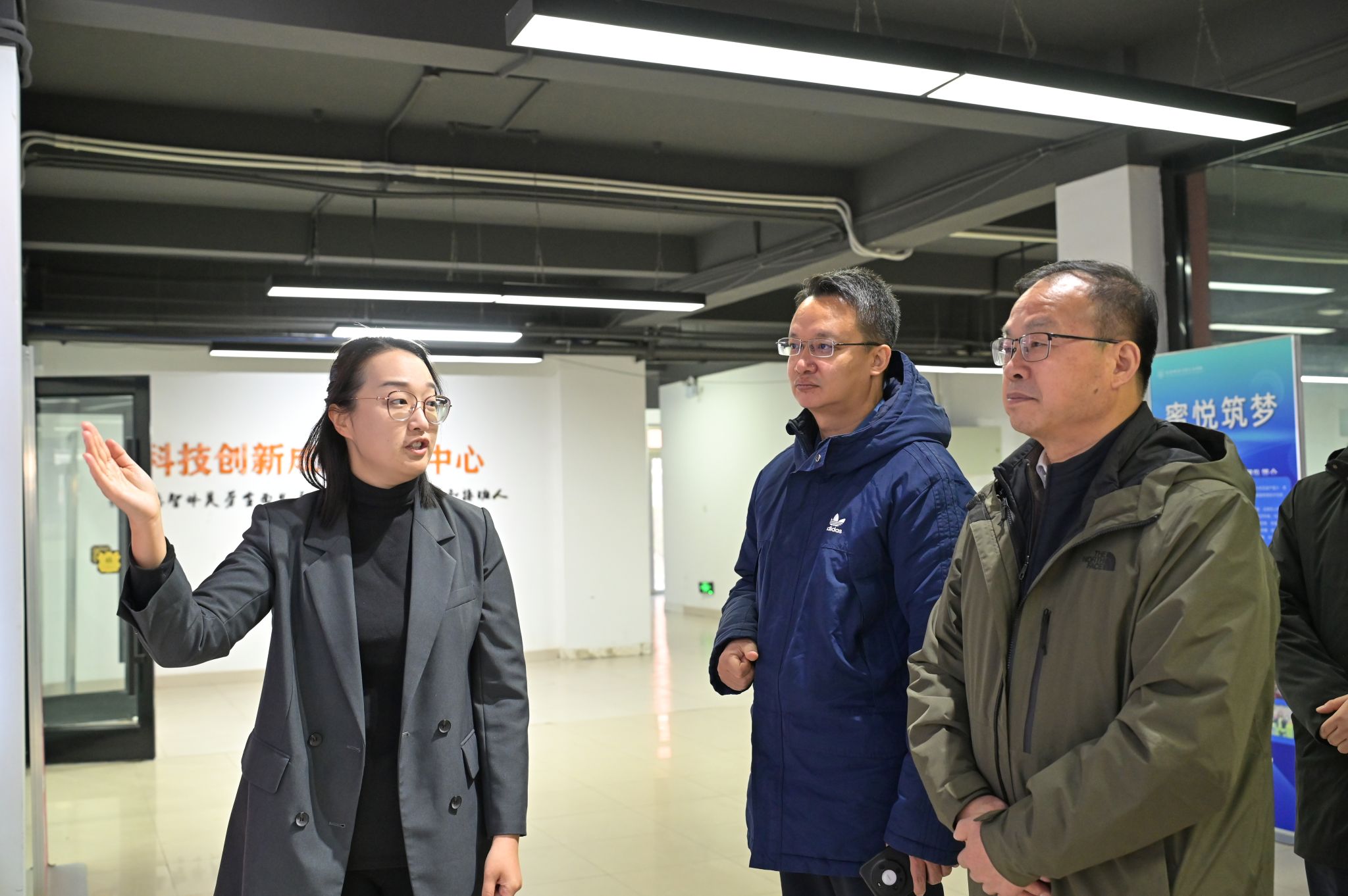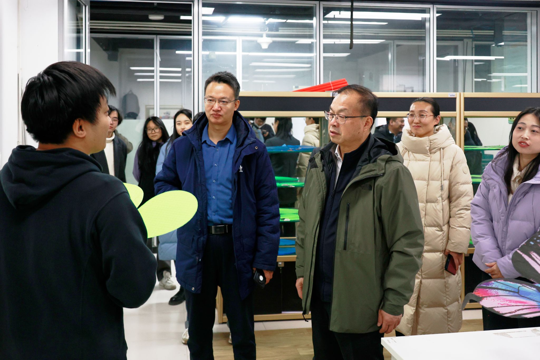 随后,俞亚东联络员深入学院众创空间实地考察,与正在进行项目研讨、实践创作的师生亲切交谈,深入了解众创空间的功能定位、孵化运营模式、优质项目成果及对学生创新精神与实践能力培养的支撑机制。调研中,他重点关注学生创新项目与市场需求的衔接,详细询问学生团队的就业方向与创业规划。俞亚东调研员对学院在创新创业教育方面取得的成效表示高度认可,他强调,众创空间是贯通理论学习与创新实践的关键平台,蕴藏着广阔的孵化空间与发展机遇,鼓励学院进一步完善机制、营造良好生态,培育更多高质量创新项目与优秀人才。