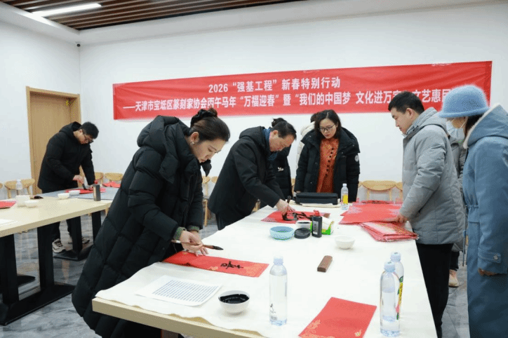 为深入贯彻落实“强基工程”与“我们的中国梦·文化进万家”号召,推动中华优秀传统文化扎根基层、滋养校园,2026年1月19日上午9:30,由天津市书法家协会篆刻委员会主办的新春特别行动“万福迎春”文艺惠民活动在问鼎国际