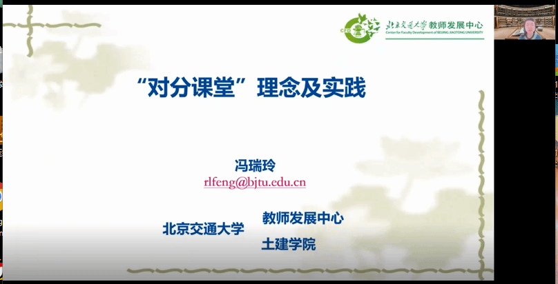 冯瑞玲老师根据“对分课堂”相关教育理论与教学理念,分析了当前教学模式中存在的关键问题,提出“对分课堂”的教学方法,阐述了对分课堂模式的科学内涵;通过对分课堂教学案例,详细地解读了对分课堂教学模式的构成及基本流程和应对措施;进而指出了对分课堂的创新之处,展示了有效对分课堂能够提高各种教育场景的教学效果。冯老师倡导教师及时探索实践对分课堂教学模式,不断提高学生课堂参与效果,调动学生学习的兴趣以及自主学习的积极性。冯老师对与会教师们提出的问题分别做了详细的解答;与会教师积极发言,互动气氛热烈。