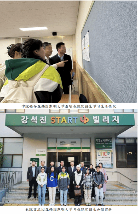 11月6日,丁煦生院长一行前往韩国东明大学进行访问并看望我院在东明大学交换生。双方就进一步加深两校合作项目进行了详细的探讨交流,表示将瞄准各校优势学科和团队,进一步探索合作模式、拓宽合作渠道,共同推动中韩高校间优势学科的交流和发展。随后,丁院长一行与交换生进行了座谈交流。丁院长详细了解了同学们在韩学习与生活情况,鼓励他们积极进取,珍惜在韩学习的宝贵机会,为未来发展积蓄力量。座谈结束后,交流团一行参观走访了学生教室、宿舍、图书馆等学生日常学习生活场所。