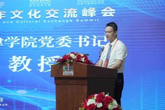 4月28日,党委书记叶振楠一行受邀出席2024年中泰教育合作文化交流峰会并作代表发言。叶振楠书记对论坛的成功举办表示热烈祝贺,并向与会代表介绍了我院的发展情况以及在人才培养方面的探索和做法。他表示,在“一带一路”倡议下,学院将持续推动中泰高等教育合作与人才培养,助力教育国际化和人才国际化,并以与泰国各高校合作为载体,加强中泰两国教育、文化等领域交流合作,为中泰友好往来培养高素质人才贡献力量。