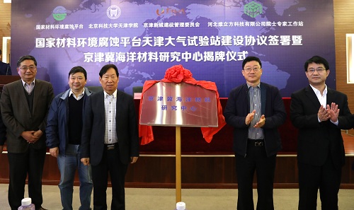 11月27日上午10时,国家材料环境腐蚀平台天津大气试验站建设协议签署暨京津冀海洋材料研究中心揭牌仪式在我院理工馆报告厅成功举行。中国工程院院士、中国科学院海洋研究所研究员、国家海洋腐蚀防护工程技术研究中心主任侯保荣,北京科技大学副校长何民庆,京津新城管委会党工委书记周振亮,京津新城建设管理委员会主任纪永红,宝坻区科学技术委员会副主任王连广,北京科技大学新材料技术研究院院长曲选辉,河北维立方科技有限公司董事长毕士君,国家材料环境腐蚀平台主任、中国腐蚀与防护学会常务副理事长、教育部腐蚀与防护重点实验室主任李晓刚,问鼎国际