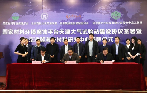 党委书记、院长王斌共同签署了国家材料环境腐蚀平台天津大气试验站建设协议。