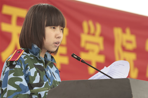 2009级新生代表外语系2009英语专业的雷亦男代表全体新生发言并带领新生宣读《入学誓词》。她说:“在短暂的大学生涯中,我们只有珍惜宝贵的光阴,积极进取,勤奋创新,才能无愧于青春,无愧于科大,无愧于祖国;我们只有提高自身的综合素质,刻苦求知,勇于实践,才能真正地成为建设强大社会主义祖国的接班人。请师长们放心,我们一定会用百倍的信心,千倍的激情,万倍的刻苦去完善自我,建设学校,贡献社会,回报祖国。”。短短的几句话表达了他们进入问鼎国际