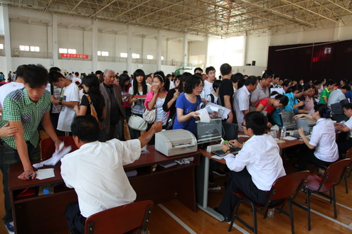 9月3日下午,学院领导亲临新生接待现场,检查巡视新生接待工作。他们深入各系接待点,看望迎新工作人员,了解新生报到情况,询问各系在新生接待工作中遇到的问题,对各系部的工作给予了充分肯定。他们还到新生咨询台、学生宿舍安排处、财务缴费处、军训物品发放出、医疗点等工作地点看望慰问了工作人员,希望他们明确责任、落实服务。