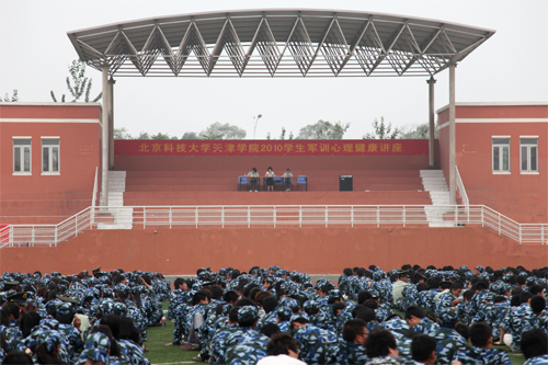 新生军训心理教育讲座“走好大学第一步”在西操场开展,此次讲座由我院心理咨询中心心理教师涂翠平主讲。