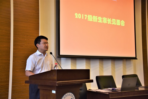 王书记代表学院全体教职员工对2017级新生及家长的到来表示了热烈的欢迎与感谢,并对我院的指导思想、培养目标、专业设置、师资力量及办学成果等基本情况做了简单介绍。王书记希望学生们要学会独立生活,独立面对困难,尽快适应大学生活。同时,希望家长们能根据孩子的实际情况给予一些引导,与学院共同努力,帮助每一位新生尽快融入大学生活,帮助他们成长成才。