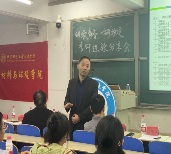 学术委员会主席宋存义教授、教务处处长舒敬荣教授、材料与环境学院党总支书记张飞鹏、环境工程系主任汪群慧教授及环境工程系全体教师和辅导员出席了本次交流会。会上邀请了2019级刘威旺、龚嘉辉、熊恩江3名考研上岸的优秀学生分享他们的考研心得。交流会由环境系教师梁宝瑞老师主持,环境工程系全体2020级学生和部分2021级学生参加。