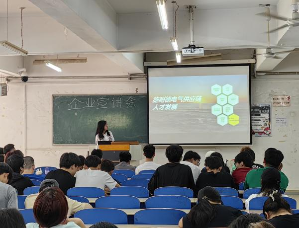 此次宣讲会共邀请到天津阿尔特汽车工程技术开发有限公司、施耐德梅兰日兰(天津)有限公司、联恒工业(天津)有限公司、翰林航宇(天津)实业有限公司等4家单位,各单位负责人向学生们介绍了公司的发展概况、员工培养体系、薪酬福利体系和职业发展晋升等内容,详细解答了在场学生的疑惑,进一步明晰了学生们对就业岗位的认识。