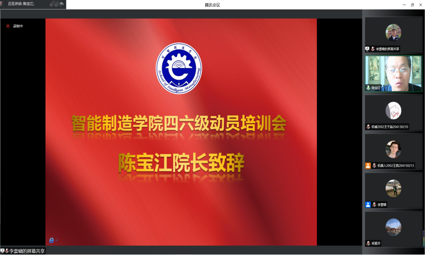 陈院长首先感谢梁素芹教授为我院及全校学生做四六级培训讲座,感谢梁教授对智能制造学院活动的大力支持,同时传达了教务处舒敬荣处长对本次活动的祝贺和对梁教授的感谢。陈院长在讲话中指出,我院全面贯彻落实学院有关精神,重抓学风建设,培养创新人才,强调了英语在学习中的重要性,以及通过四六级的重要意义,要求全院同学以此次动员培训会为契机,努力学习,实现英语成绩突破。