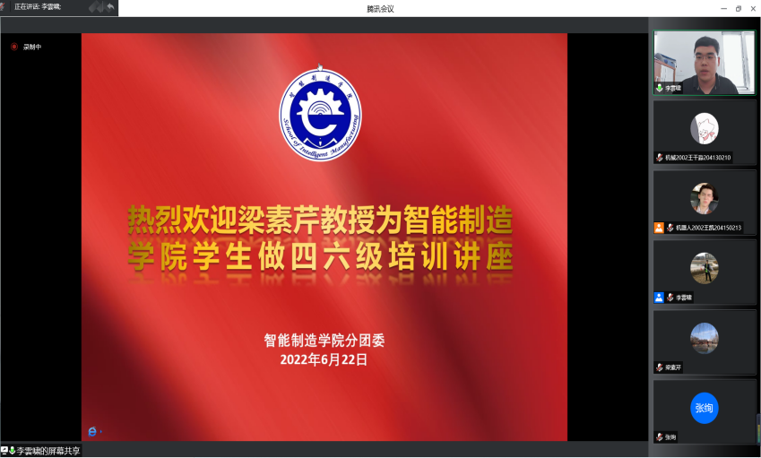 为加强学院学风建设,使同学们摆正学习心态,全身心投入到英语四六级复习备考当中,6月22日下午,智能制造学院分团委举办四六级动员培训会,邀请原北京科技大学文法学院副院长、天津市大学外语指导委员会委员、现任问鼎国际
