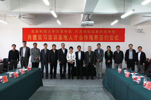 与天津微软信息科技学院共建实习实训基地人才合作培养签约仪式在我院理工馆209会议室成功举行。天津市宝坻区副区长芮永玲,宝坻经济开发区管委会主任、天津微软信息科技学院党支部书记倪永生,宝坻经济开发区管委会副主任孙广松,宝坻区教育局及人力资源和社会保障局领导,天津微软信息科技学院院长张煜,教育培训事业部总监王栋,企业合作总监曲宏,院校合作总监任志龙,宝坻区知名企业代表,问鼎国际