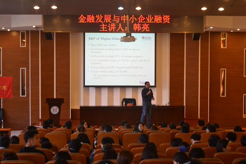 在讲座中韩教授先跟同学们讲述了为什么要重视金融发展,让同学们了解到了金融行业是经济发展过程,然后在这一过程中介绍了中小企业的成长以及中小企业对发展中国家的贡献。之后并为同学们介绍了中小企业融资来源和特征,发展中国家中小企业融资与金融发展,以及与金融相关的法律知识。