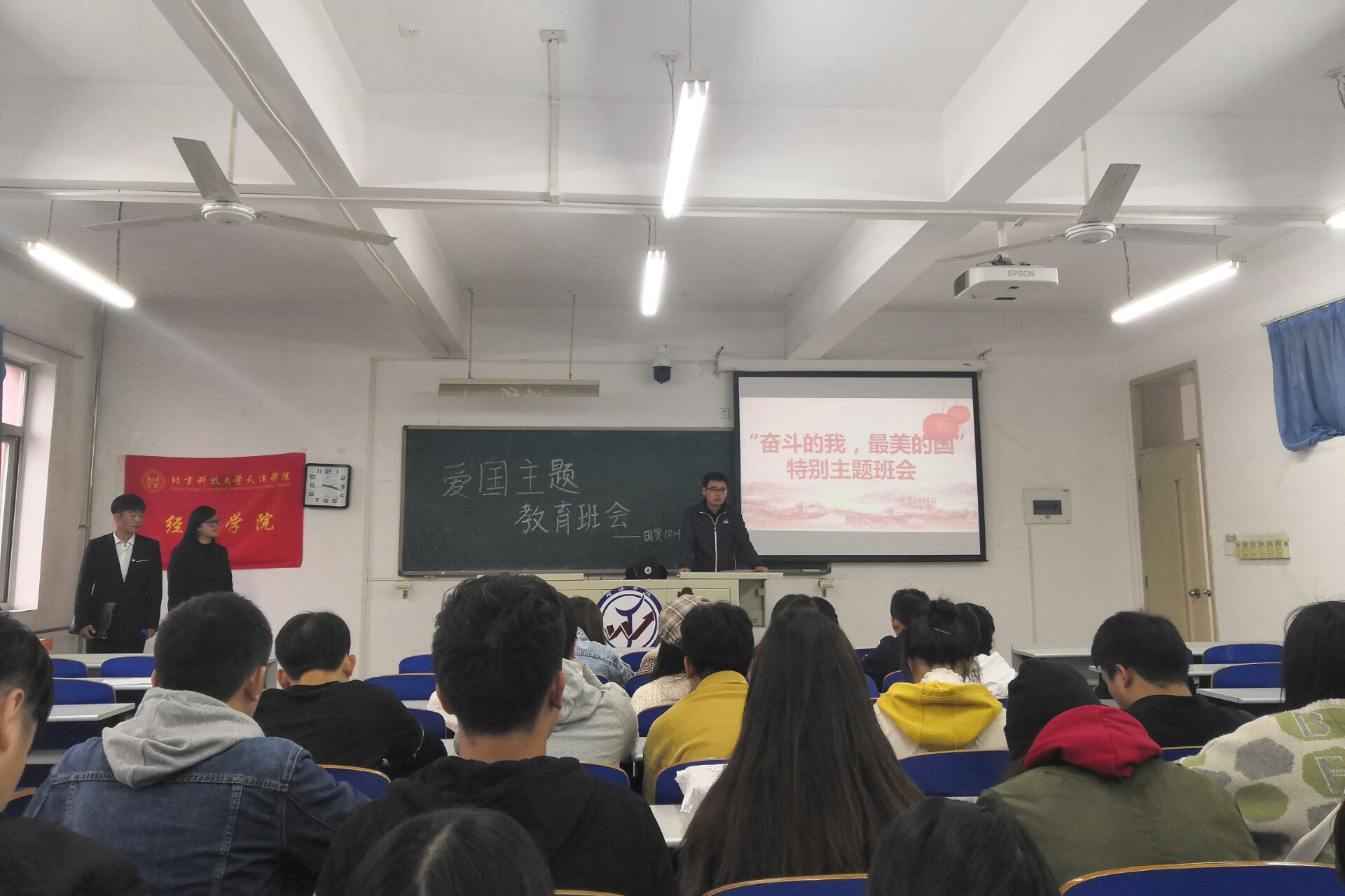 经济学院18级国贸专业于10月16日-18日,开展“奋斗的我,最美的国”爱国主题教育班会。本次活动由班级自行筹备组织,以庆祝新中国成立70周年为契机,主题聚焦、内容丰富,讨论热烈、动情深刻,达到了预期效果。