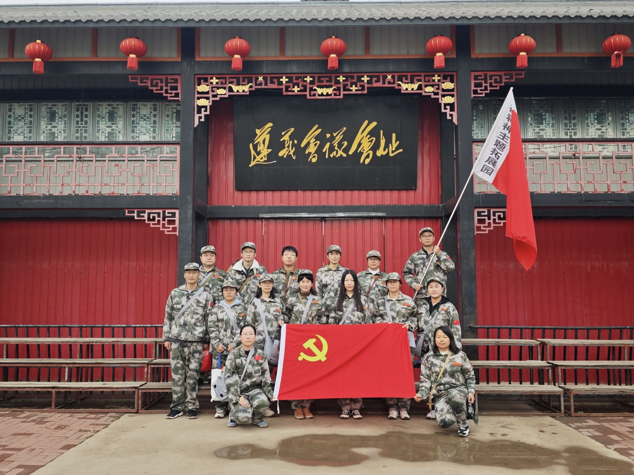 活动当天,全体教师在第六埠村红色教育基地前整齐列队,面向党旗,重温了入党誓词,并举行了庄严的授旗仪式。“出发!”随着米岩书记的一声令下,全体人员精神饱满地踏上了重走长征路的征程。老师们身着迷彩服,精神抖擞,在讲解员的带领下,沿着结合长征历史精心设计的行军路线,依次通过三道封锁线、血战湘江、遵义会议、飞夺泸定桥、爬雪山、过草地、激战腊子口,一步步深入那段波澜壮阔的长征历史,重温了那段不平凡的行军之旅。每一个场景都让我们身临其境,深刻感受到了那段艰苦卓绝的革命岁月。在行进途中,讲解员穿插讲述的感人故事和英雄事迹,更是让老师们深受感动和启发,纷纷表示要铭记红军的丰功伟绩,珍惜今天来之不易的幸福生活,将革命先烈的精神传承下去,让红色基因在新时代焕发出新的光芒。在原地休整期间,米岩书记作为领唱,还带着老师们开展了唱红歌活动。激昂的红色歌曲,不仅让大家的心灵得到了净化,更激发了老师们在新时代新征程上为党和人民的教育事业贡献力量的决心和信心。