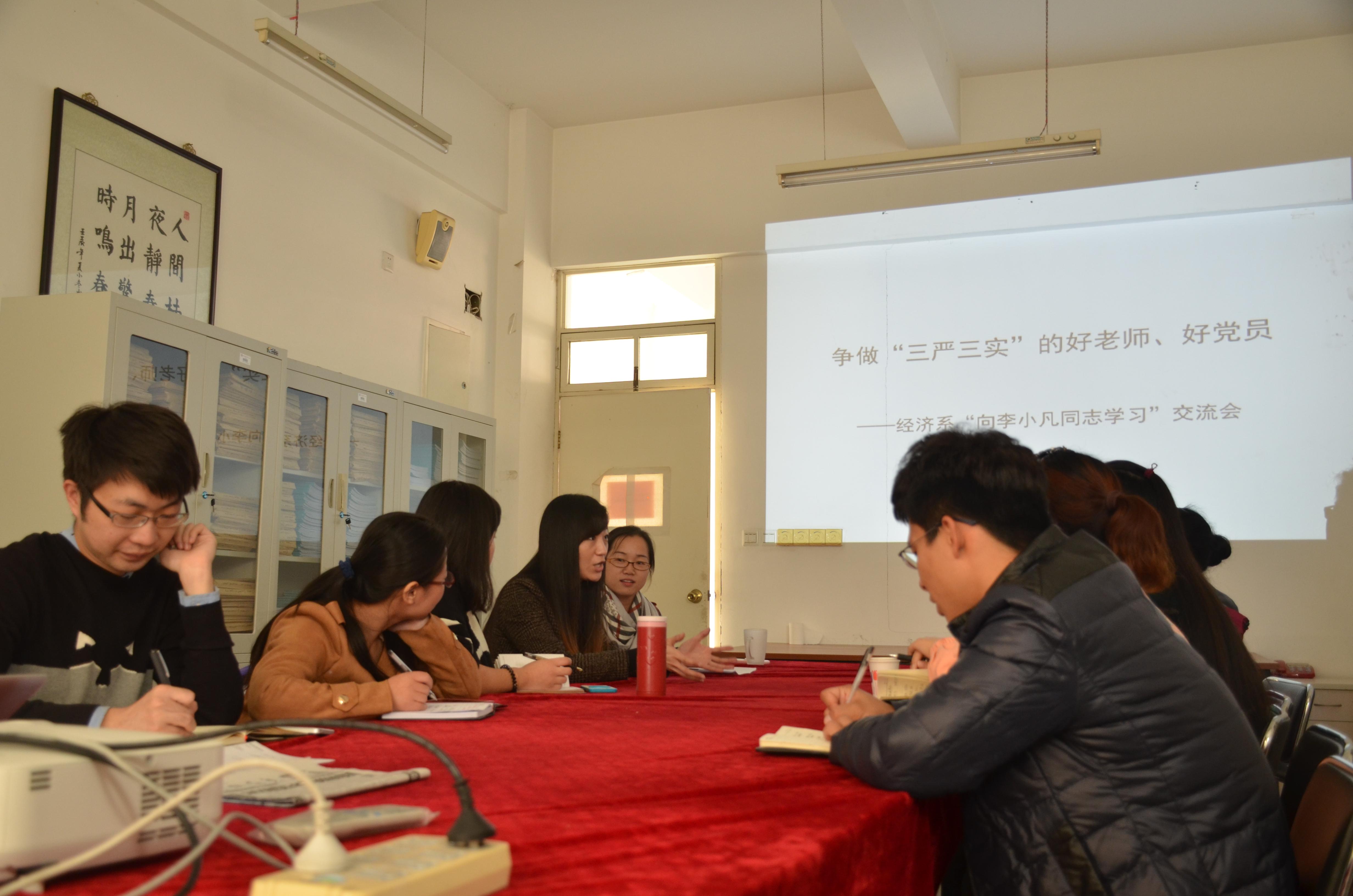 与会人员积极发言,现场气氛热烈,多名教师从经济系学生特点出发,结合自身实际工作畅谈工作感想。通过学习交流,教师们纷纷表示李小凡老师是一个平凡的好人,但在平凡中见证着伟大,是我们身边看得见、摸得着、学得了的现实榜样。与会教师表示要从加强课业指导,关心学生生活等方面切实落实李小凡同志“课比天大,慈爱如父”的为师之道,为人之道,在实际工作中践行“三严三实”精神,