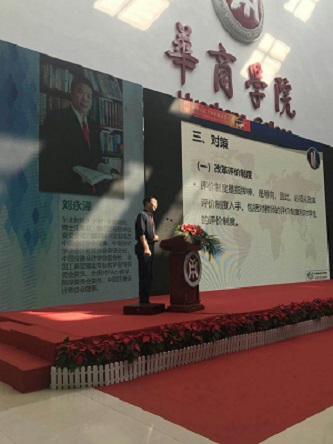 管理学院常务副院长王宾容老师、管理学院教师王晓欣参加了会议。东北财经大学刘永泽教授、中国人民大学王化成教授、清华大学于增彪教授、重庆理工大学程平教授等分别围绕会计教育改革、新时代会计人才培养、管理会计教育创新、“互联网+会计”教育等财会前沿问题做了精彩的报告;广东财经大学华商学院陈美华教授更是以“民办高校会计人才培养目标定位与特色培育”为主题,从民办高校特点、协同育人特色、国际化特色、“互联网+会计”特色等角度深入浅出的阐述了独立学院在财会人才培养上的优势及前景,为我院起到了很好的借鉴作用。