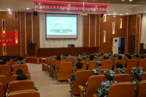 外国语学院2019级新生见面会在理工馆学术报告厅召开。外国语学院院长张国敬、英语教学研究中心主任梁素芹、党总支书记张莉、党总支副书记张添善、英专教研室主任张媛、分团委书记李萌以及教学秘书耿睿出席本次新生见面会。本次新生见面会由2019级辅导员孙雨馨主持。