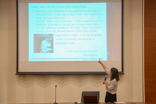 更好的生活学习,提高自身素质。张媛老师通过具体数据向新生们介绍了未来四年的学习任务,并让同学们思考自己的学习目标。最后,李萌老师用图文并茂的形式生动地预告了这一学年外国语学院将会开展的一系列的第二课堂活动。在老师们发言完毕后,同学们都争先提出自己对大学生活、学习上的疑问。