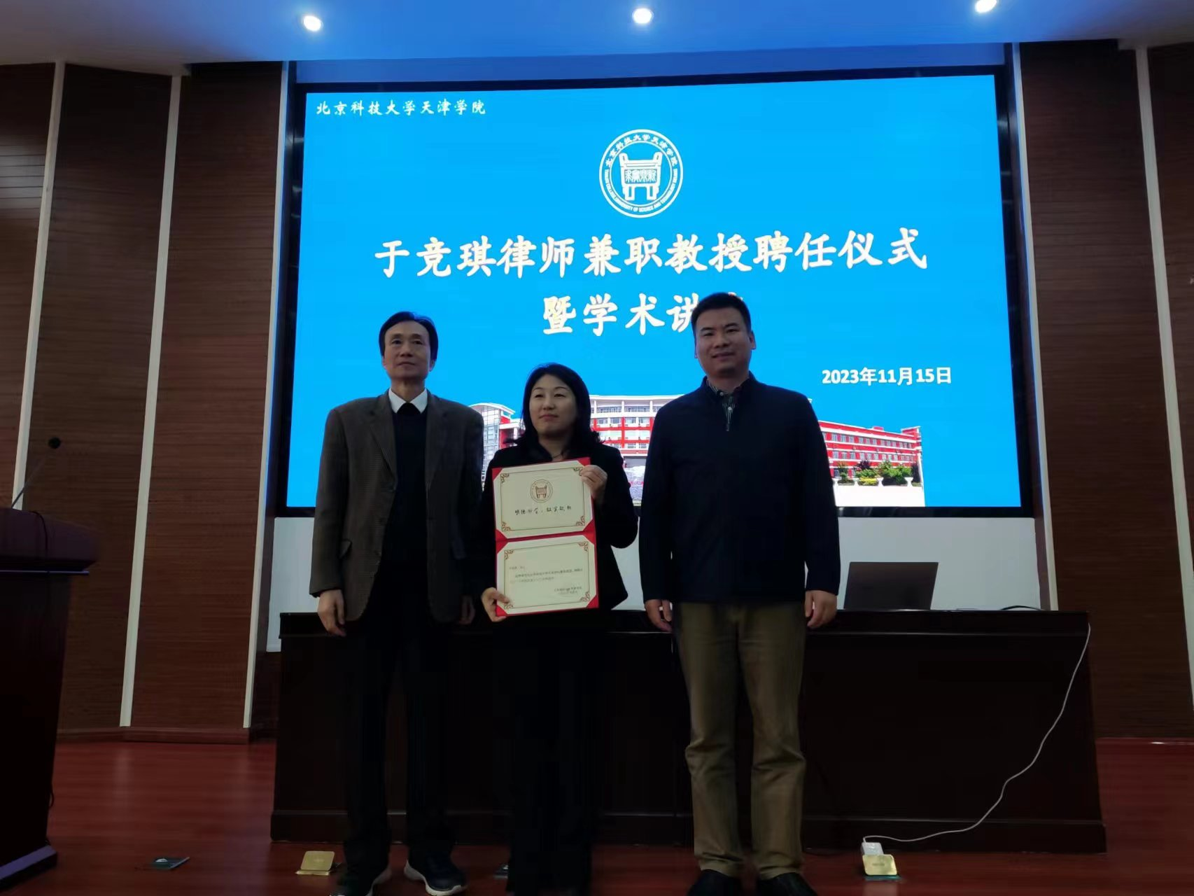 党委副书记赵志南、法律系主任朱京安、常务副主任邢晓晖、法律系党总支书记张莉到会。赵志南副书记亲自为于竞琪律师颁发聘书,对于竞琪律师表示热烈的欢迎,同时对法律系今后在人才培养和专业建设等方面的工作提出了要求和期望。