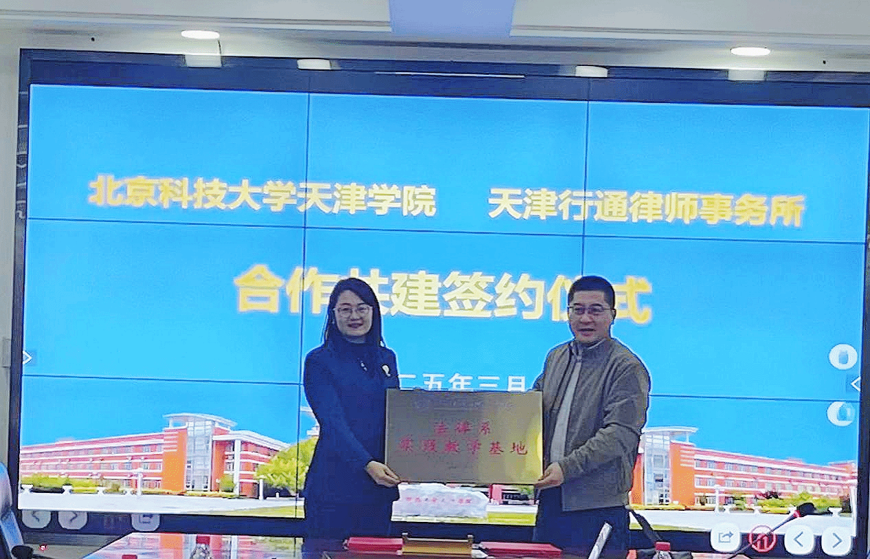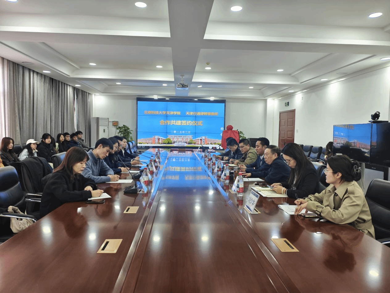 2025年3月13日上午,我院与天津行通律师事务所合作共建签约仪式在12教300会议室隆重举行。天津行通(宁河)律师事务所书记主任、团总支书记王欣宇,天津行通律师事务所民商法律服务中心副主任侯一男、办公室主任张宇,专职律师王裔一行莅临签约现场,我院副院长张永锋,产学研办公室主任彭鹏和法律系常务副主任邢晓晖,党总支书记张莉,办公室副主任李春光,教师代表董祺、刘少华以及二十余名学生代表出席仪式。会议由法律系教师李文一主持。