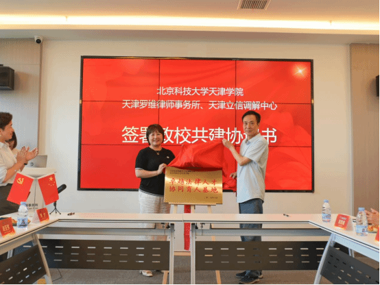 法律系与天津罗维律师事务所、天津市滨海新区立信调解中心“校所合作签约仪式”。仪式由蒋力老师主持。