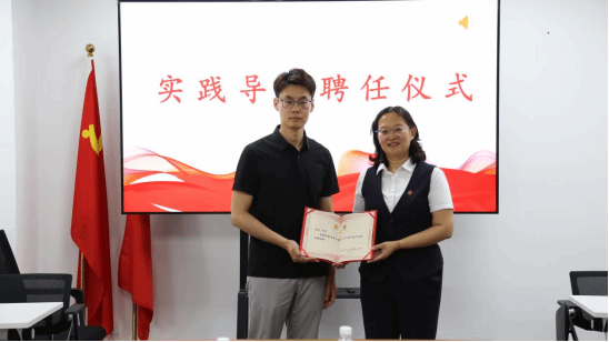 李文一主任向受聘校外实践导师张红主任颁发实践导师聘书。